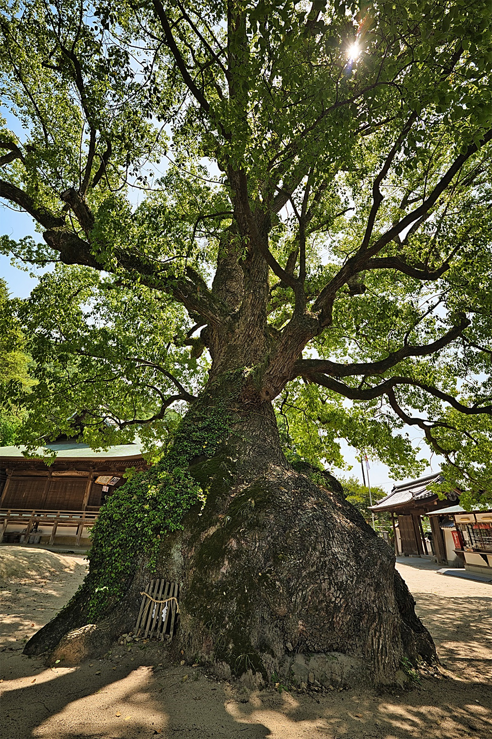 境内に御神木の大楠がそびえます。昭和37(1962)年に三原市の天然記念物に指定されました。