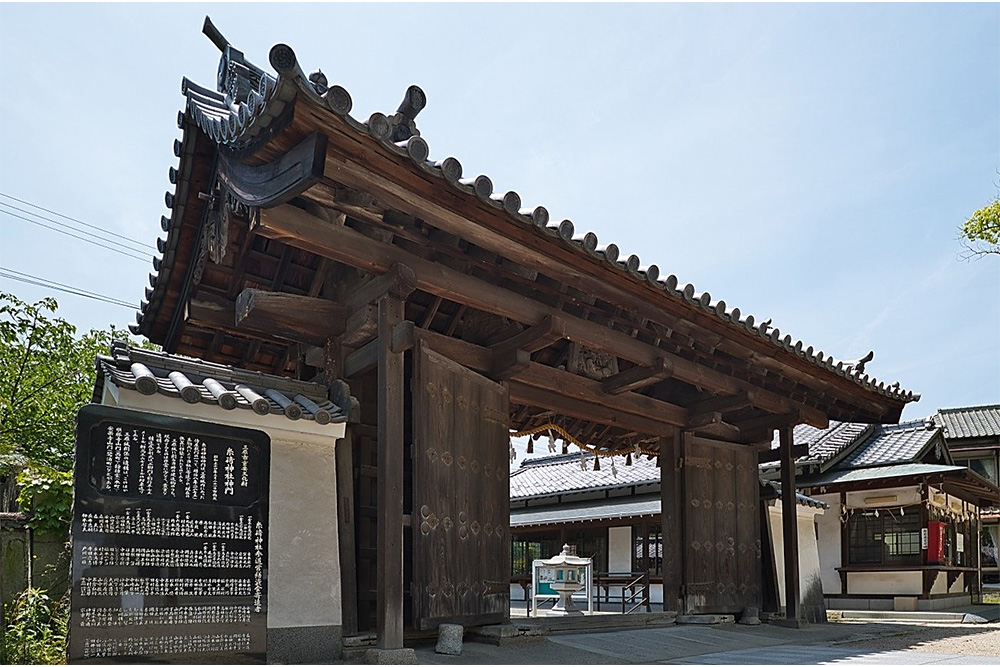 明治8(1875)年に三原城内の侍屋敷門が移築されました。三原城の数少ない現存遺構です。昭和54(1979)年に三原市重要文化財に指定されています。